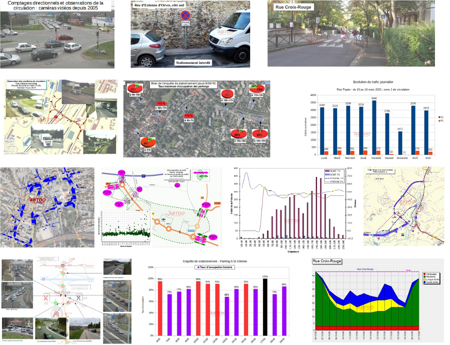 - Comptages et enquêtes de circulation : comptages en section, directionnels (par caméras vidéos), interviews, relevés de plaques